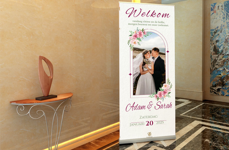 De vrijdagen en zaterdagen zijn populaire zaterdagen waarbij er vaak meerdere stellen op dezelfde dag naar het stadhuis komen om elkaar het jawoord te geven. Wanneer je dan het stadhuis een persoonlijke touch wilt geven, is het belangrijk dat je dit snel en eenvoudig kunt doen. Bij Welkomst Banners ben je hiervoor aan het juiste adres. Bij ons kun je namelijk terecht voor just married versiering die je snel kunt plaatsen en weer snel mee kunt nemen. Wij hebben namelijk speciale banners die je geheel naar wens samen kunt stellen.