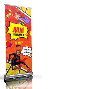 Onze rollup welkomstborden zijn volledig op maat te ontwerpen met naam, datum, logo, foto’s, een persoonlijke boodschap en een passend kleurgebruik. Kies uit stijlen die aansluiten op een trouwthema, babyshowerstijl, verjaardagsfeest of professionele huisstijl voor bedrijven. De hoogwaardige full-colour print op stevig materiaal zorgt voor een strak resultaat dat mooi blijft staan tijdens het hele evenement.