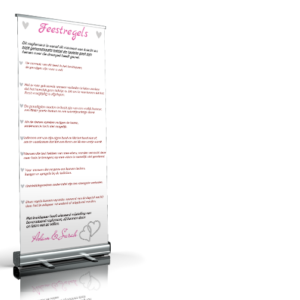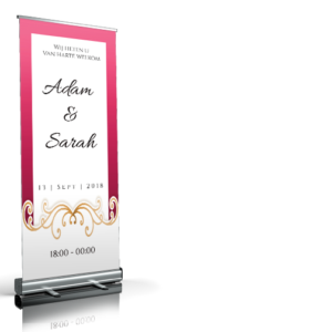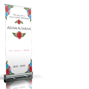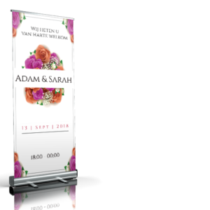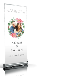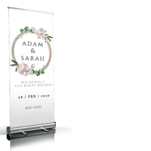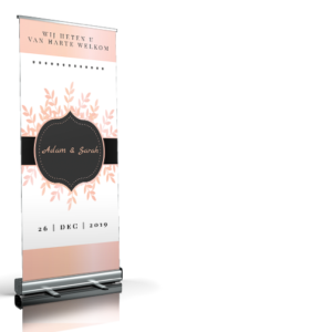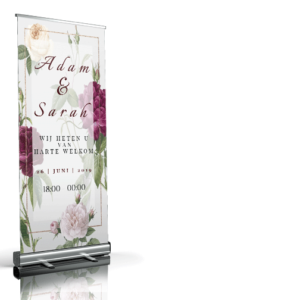 Of je nu een romantische bruiloft plant, een babyshower organiseert, een verjaardag viert of gasten ontvangt namens een organisatie: met een professioneel ontworpen rollup welkomstbord creëer je direct een duidelijke, uitnodigende entree die past bij de sfeer en het doel van jouw evenement.