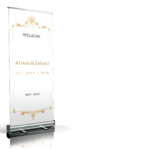 Of je nu een romantische bruiloft plant, een babyshower organiseert, een verjaardag viert of gasten ontvangt namens een organisatie: met een professioneel ontworpen rollup welkomstbord creëer je direct een duidelijke, uitnodigende entree die past bij de sfeer en het doel van jouw evenement.
