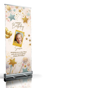 Wanneer je een verjaardagsfeest plant, is de eerste indruk onmisbaar. Een welkomstbord voor een verjaardag is niet alleen een praktisch element om je gasten te verwelkomen, maar het zet ook meteen de toon voor wat zij kunnen verwachten. Bij Trouwbanners begrijpen we het belang van die eerste indruk. Daarom bieden wij je een reeks aan mogelijkheden om een gepersonaliseerd welkomstbord in de vorm van een roll-up banner te creëren die niet alleen indruk maakt, maar ook blijvende herinneringen creëert.